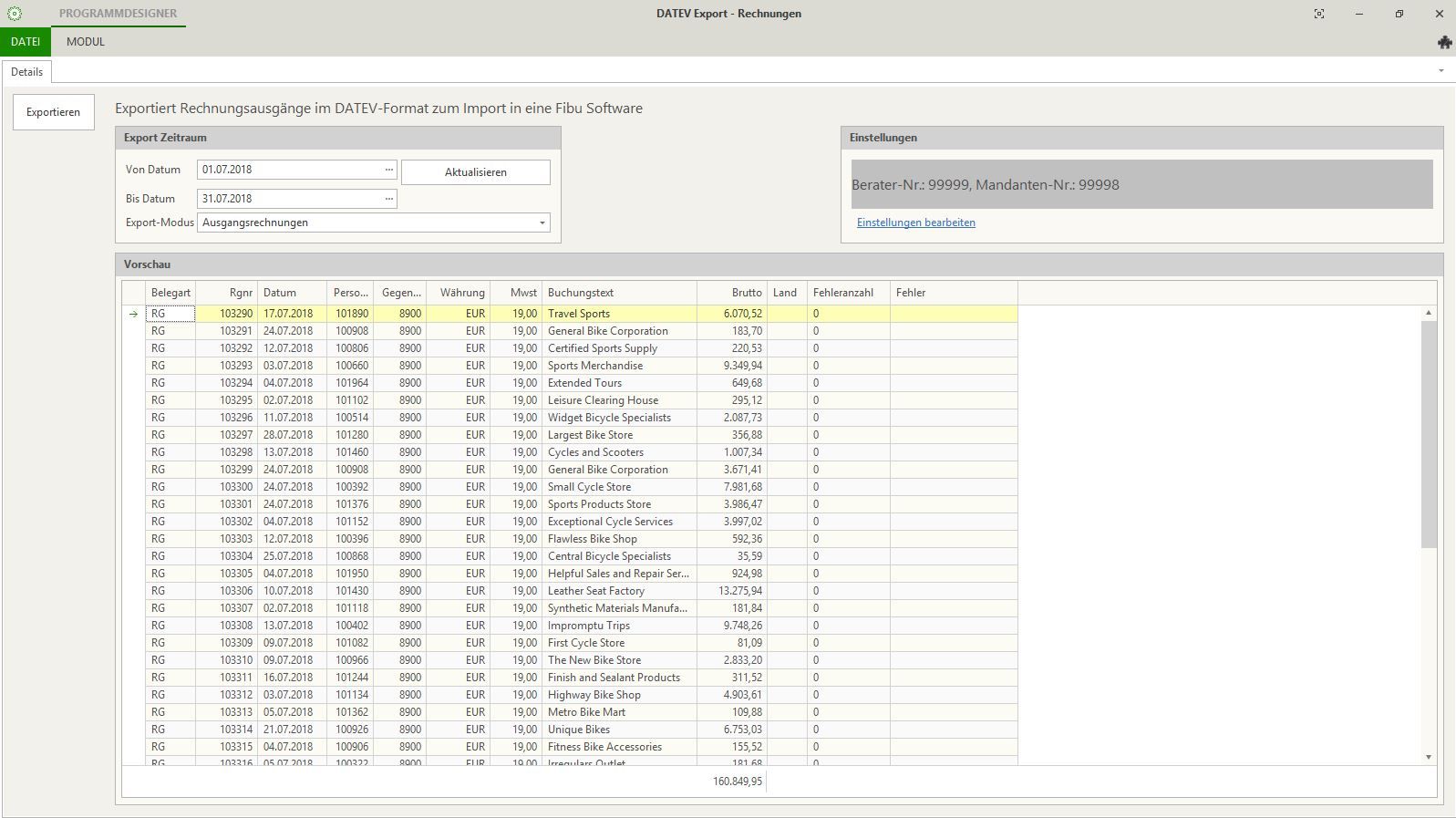 - Rechnungsausgänge im DATEV-Format