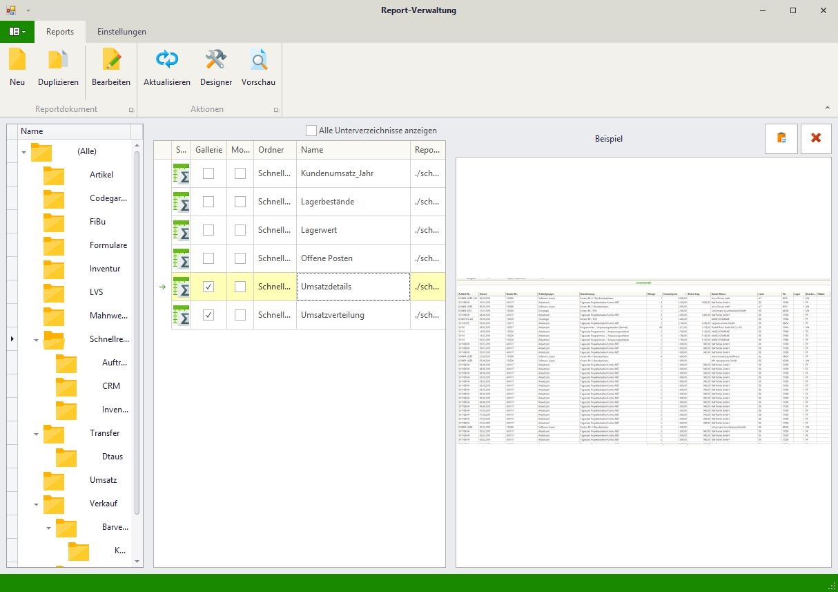 Kontor beinhaltet im Standardumfang eine ganze Reihe von Werkzeugen, mit der die professionelle Gestaltung aller Druckausgaben einfach und übersichtlich wird. Bestehende Formulare wie z.B. Angebote oder Rechnungen lassen sich so einfach an Ihr individuelles Design anpassen und erweitern. Neben dem internen Reportdesigner, mit dem alle im Kontor Standardumfang ausgelieferten Vorlagen gestaltet sind, unterstützt Kontor auch die Verwendung von „Crystal Report“, einem Reporting Tool, das in vielen Unternehmen verwendet wird.