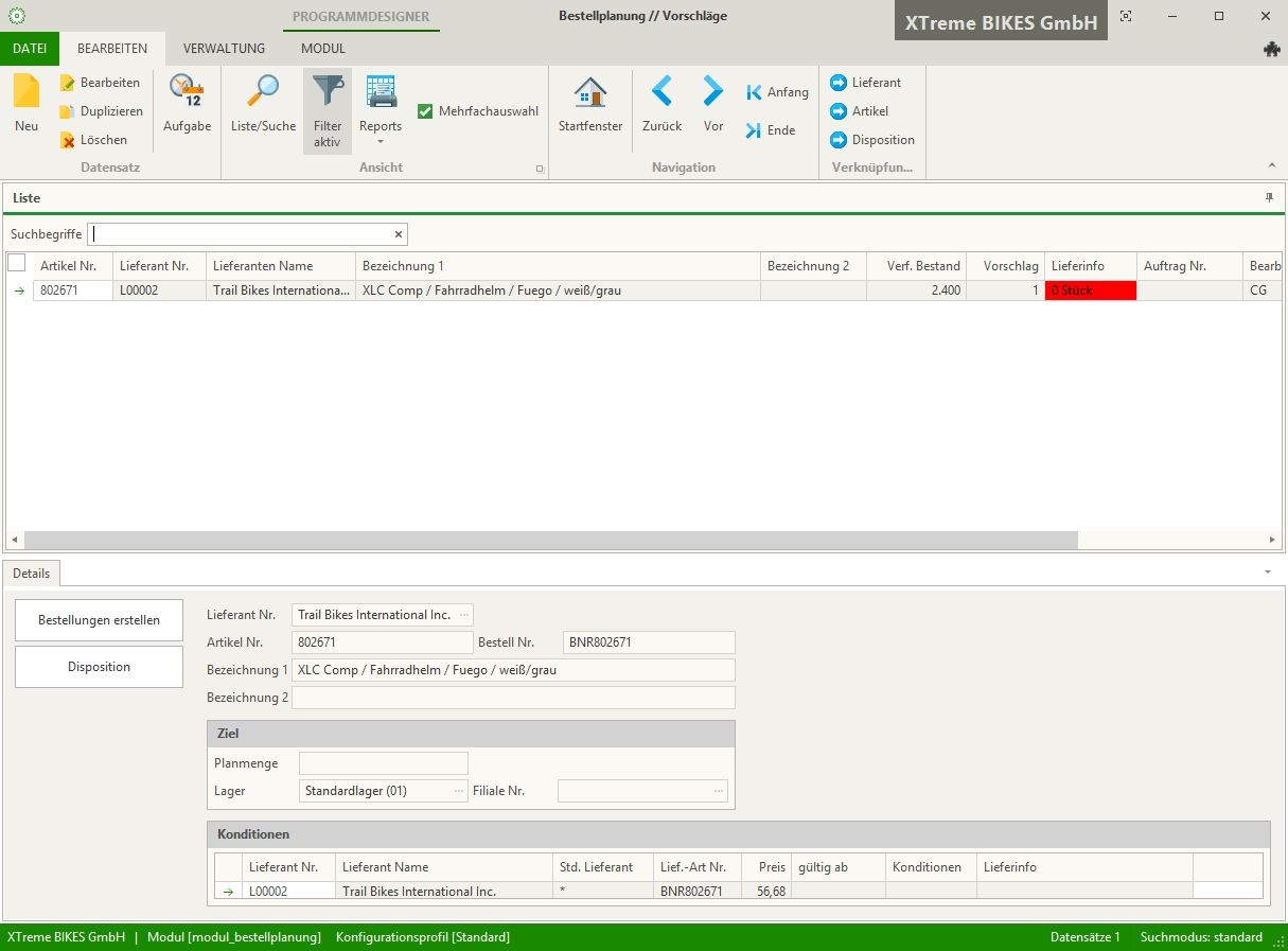 Im stationären und natürlich besonders im Online-Zweiradtelehandel steht die schnelle und preisgünstige Lieferfähigkeit an oberster Stelle. Mit der in Kontor R4 voll integrierten VeloConnect Verfügbarkeitsabfragen sehen Sie die Informationen Ihrer Lieferanten online in Kontor – ganz ohne zeitaufwändige Abfragen per Email oder Telefon. So erkennen Sie Lieferengpässe bei Ihren Lieferanten auf einen Blick. Zudem erkennen Sie auch gleich, welcher Ihrer Lieferanten den Artikel am günstigsten liefert. Die Verfügbarkeitsabfrage der Lieferanten-Lagerbestände über VeloConnect ist in Kontor R4 an verschiedenen Stellen möglich: Aus der Modul „Artikelinformation“, direkt bei der manuellen Auftragserfassung sowie natürlich bei der auftragsbezogenen oder globalen Bestellplanung.