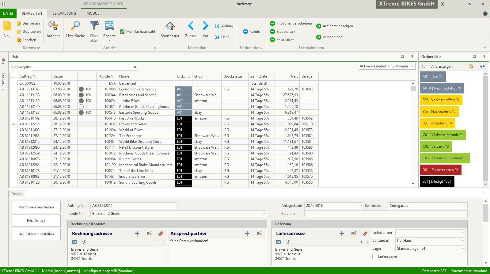 Mit Hilfe eines übersichtlichen Ordnersystems zur Organisation von Kundenaufträgen verlieren Sie nie den Überblick über den Status Ihrer Aufträge. Jeder Auftrag ist in dem Ordner entsprechend seines Abwicklungsstandes sortiert. Somit ist es unmöglich den Fortschritt der entsprechenden Bestellungen aus den Augen zu verlieren. Ob Auftragsbestätigungen, Lieferscheine oder Rechnungen, Dokumente drucken Sie einfach direkt aus dem Auftrag heraus, entweder einzeln, jedes Dokument für sich, oder alle Dokumente einer Bestellung zusammen, individuell an Ihren Workflow angepasst. Auch der Stapelduck von Belegen für mehrere Aufträge gleichzeitig ist kein Problem. Der Arbeitsablauf in Ihrem Unternehmen benötigt weitere Belege, die aus einem Auftrag generiert werden, wie z. B. Picklisten oder Betriebsaufträge? In Kontor R4 können zusätzliche Belege individuell angepasst und hinterlegt werden.